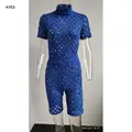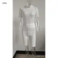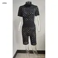 Women Summer Short Sleeve Holes Rumpers Sexy Hollow Out Playsuits Short One Piece Trouser Half Neck Slim Skinny Romper Playsuits